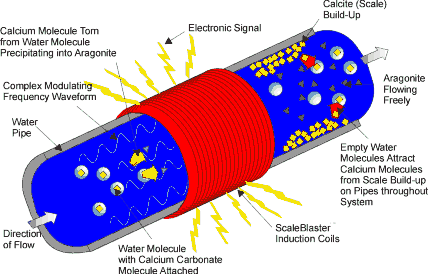 stick to the pipe walls. These calcium molecules precipitate into an aragonite form and
